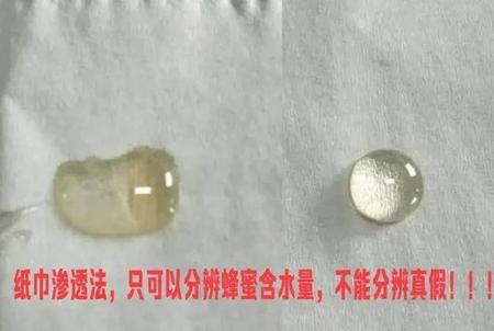 注意!网上有些方法不可取,比如:越粘稠越真,滴在卫生纸上看是否扩散,看蜂蜜是否结晶等,这些方法是辨别不出真假的!因为纯蜂蜜种类不同,浓度、含水量不同,结晶状态不同。槐花蜜就是比较稀的,容易渗透纸巾,也不容易结晶,因为槐花蜜花期短,酿造不了高浓度蜂蜜!