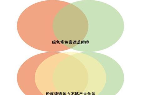 有些人想用绿色修色膏在粉底液之前来遮盖红色痘痘痘印,看起来是利用色差遮盖住了痘痘痘印,但是在上一些遮盖力不是很强的粉底液之后会在痘痘和痘印位置产生明显色差,远不如使用与粉底液同色号的遮瑕膏在粉底液之后遮瑕的效果自然。不过,可以将修色盘里面的颜色进行调和使用,遮盖斑点时调和成与肤色接近的颜色,遮盖痘痘和痘印时调成与粉底液非常接近的颜色。肤色比较白皙的人更适合使用专业的遮瑕产品。