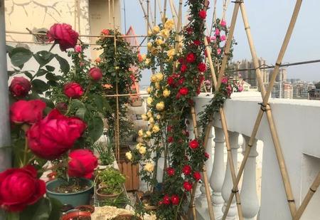 家里栽月季是可以的,只有栽微型月季,爬藤的,灌木的就不要种了。家里阳台空间有限,还要晒衣服晒被子。