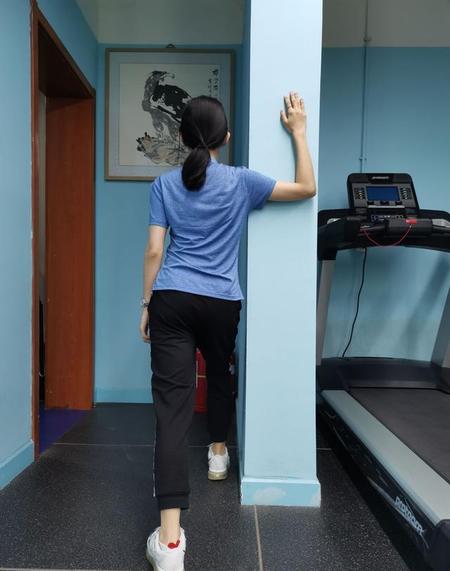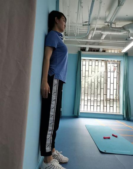 2、头部、肩部、臀部、脚后跟一定要紧贴在墙上。