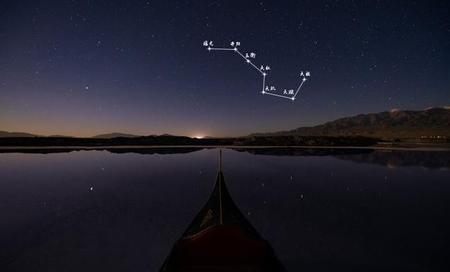 北斗七星,是指大熊座的天枢、天璇、天玑、天权、玉衡、开阳、摇光七星。古人把这七星联系起来想象成为古代舀酒的斗星,故名北斗。北斗七星在不同的季节和夜晚不同的时间,出现于天空不同的方位,所以古人就根据初昏时斗柄所指的方向来决定季节:斗柄指东,天下皆春;斗柄指南,天下皆夏;斗柄指西,天下皆秋;斗柄指北,天下皆冬。