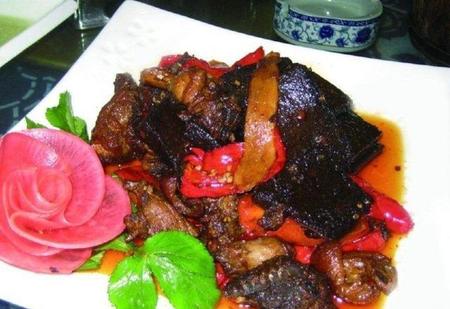 凤凰血粑鸭,是湖南省湘西土家族苗族自治州凤凰县的传统特色美食。这道菜工序复杂,工艺考究,是以本地土鸭、糯米为主要原料,配以花椒、老姜、酱油、豆瓣酱、鸡精、食盐、辣椒、植物油等佐料制作而成。做好的血粑鸭既有鸭肉的鲜美味浓,又有血粑的清香糯柔,吃起来口感香浓,味道香辣,令人食欲大增。