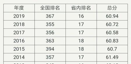 这是延安大学近几年的全国排名情况,还有省内的排名情况。总体来说,排名不是特别靠前,大概也就是在350名左右一直徘徊,实力尚可,发展速度一般。