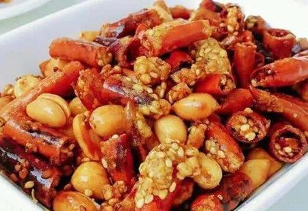 花生米和辣椒酥可以分开作,那样还能更好掌握炸制时间,只是分开炸制时,花生米就吸收不了辣椒特有的辣味和香味,在风味上会稍微差一些。